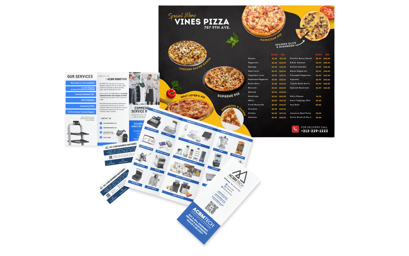 Get essential design and printing services for your business at ACBM Media. Our team will design and deliver the final printed product directly to your business.