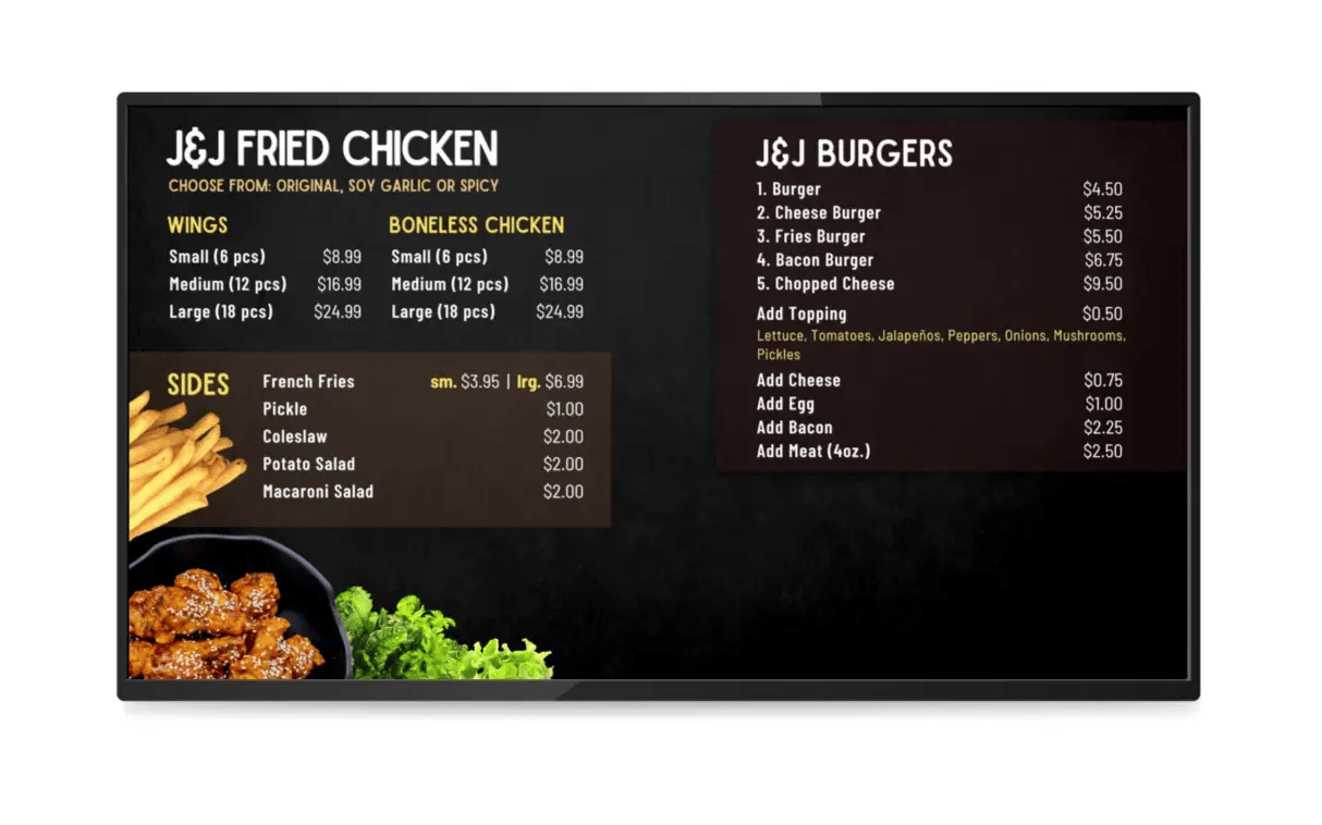 Tired of spending on your traditional paper menus? Upgrade to a digital menu board and cut down or eliminate your printing cost. You'll enjoy a hassle-free installation and no longer have to worry about updating your menu.